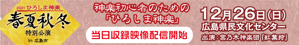 ひろしま神楽振興支援事業実行委員会では、令和3年度事業として、2021年12月26日に広島県民文化センターで開催した、神楽初心者のための「ひろしま神楽」の収録映像の配信を開始しました。
